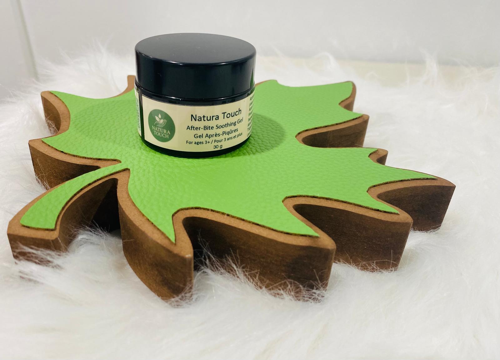 A gentle plant-based gel that soothes itchiness and calms irritated skin after insect bites.